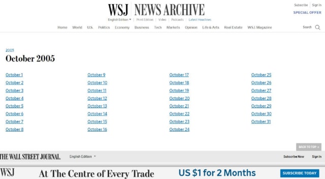 なお、WSJ電子版の記事のNews Archiveは全文は有料会員にならないと読めないが、冒頭の記事分は日付がわかれば検索可である。