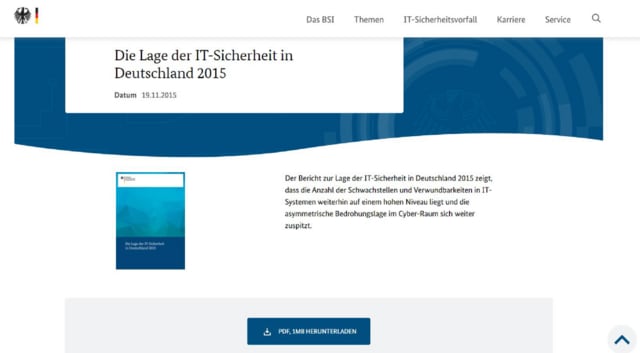 (https://www.bsi.bund.de/SharedDocs/Downloads/DE/BSI/Publikationen/Lageberichte/Lagebericht2015.html#:~:text=Der%20Bericht%20zur%20Lage%20der,Cyber%2DRaum%20sich%20weiter%20zuspitzt.)