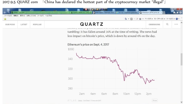 (注2) 2017.9.5 B Bloomberg「ビットコインが急落、中国人民銀行が仮想通貨の新規公開は違法と宣告」
