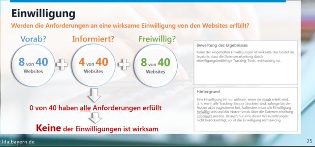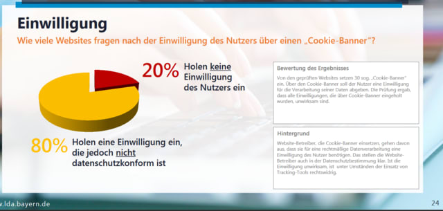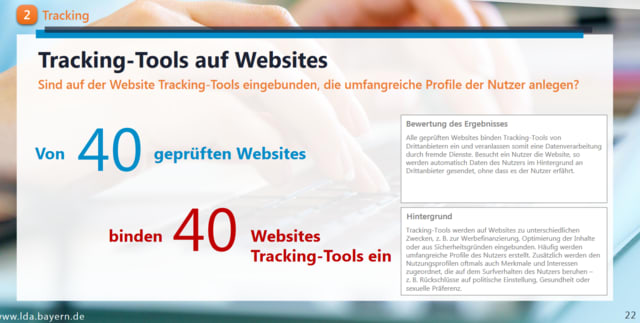 情報保護面からのチェック:「トラッキング」のプライバシー侵害にかかる苦情が統合されたバイエルン州内の選ばれた40のウェブサイトのトラッキングの実態に関するデータ保護調査(トラッキングの情報内容およびユーザーの同意を含む)結果