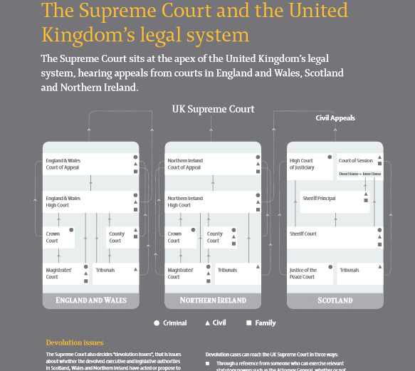 (筆者注1) 英国の最新司法制度を連合王国最高裁判所サイト(Supreme Court and the United Kingdom’s legal system)で確認しておく。わが国では、現時点でこの資料に匹敵する公開資料はない。筆者はいずれ翻訳する予定である。