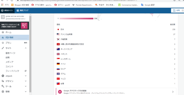 4.内外の閲覧者数の統計数(google blogger and WordPress)