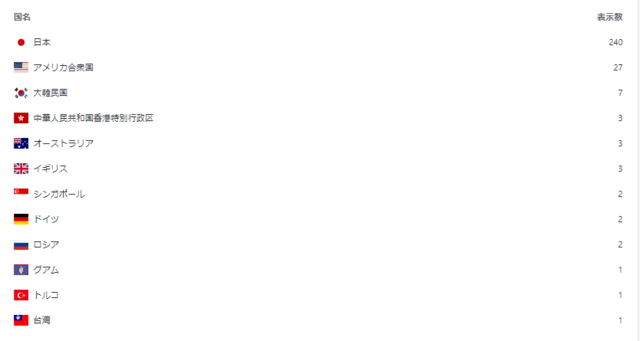 (1)2005.9~2017.8 全期間の国別閲覧数