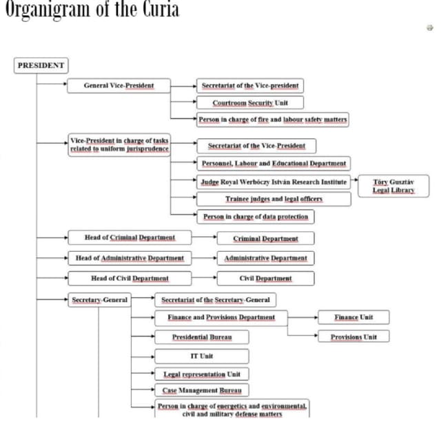 ハンガリー基本法第25条(Courts)によると、憲法裁判所はハンガリーの最高司法機関である。それは法律の統一された適用を保証し、統一された管轄権に関するその決定は他の裁判所を拘束する。