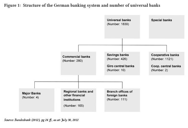ドイツでは、銀行などの金融機関を三つに大別することができる。民間銀行、公営銀行及び共同組合銀行(Genossenschaftsbank)である。