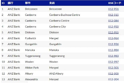 BSBコード:オーストラリア銀行の銀行・支店コード例