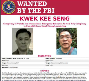 11月3日付けで国務省は、シンガポール国籍のクウェック・キー・セン(Kwek Kee Seng)(シンガポール国籍で、シンガポールを拠点とする海運会社およびターミナル運営会社スワンシー・ポート・サービス(S)Pte Ltd)の取締役であり、米国の法律に違反して北朝鮮に燃料を密かに輸送することで、米国と国連の制裁を回避する広範な計画に従事していたとして広く情報提供を求めた。