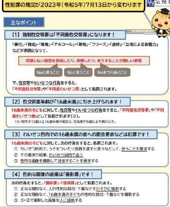 (2)未成年者を被害者とする重大な性犯罪の処罰「不同意わいせつ罪」と「不同意性交等罪」(2023.7.13[施行の刑法改正)