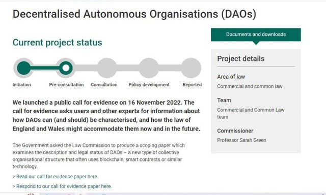 法務委員会は、2022 年 11 月 16 日に証拠の公開募集を開始しました。証拠の募集では、ユーザーや他の専門家に、DAO をどのように特徴付けることができる (またそうすべきである) か、またイングランドとウェールズの法律が現在および将来どのように DAO に対応できるかについての情報を求めている。