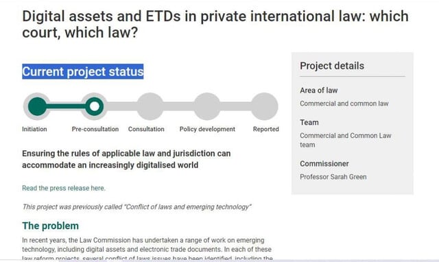 英国法務委員会のデジタル資産専門サイト「Digital assets: which court, which law?」