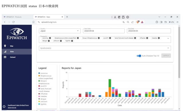 当大学が運営するEPIWATCHプラットフォーム(注17)は、公開されているデータと情報を使用したオープンソースの監視は、国際報告データベースの更新が遅れる可能性がある場合に、より迅速な情報を提供できるものである。